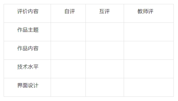 陈老师满心欢喜地以为同学们有了这个评测量表会更加科学地对自己和同学的作品进行评价,然而,课上同学们的表现令陈老师很失望,班级里一片混乱。学生们七嘴八舌,“怎么评啊?”“满分是多少啊?”“主题多少分?内容多少分?……”陈老师不禁沉思起来,“这不是你们想要的评价方式吗,到底哪里出了问题呢?”